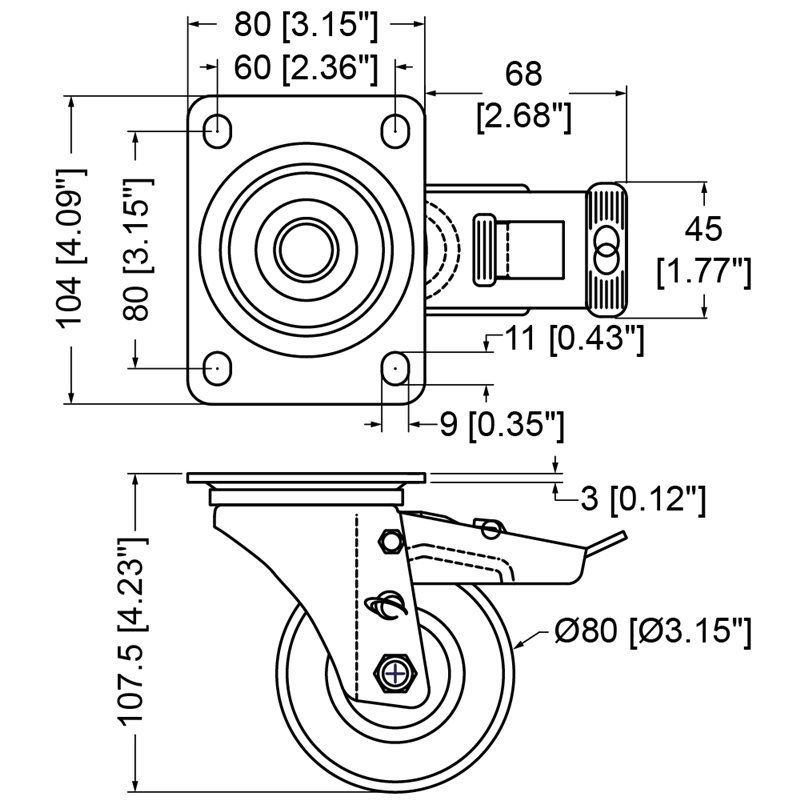 Lenkrolle 80mm, blau, PE mit stop